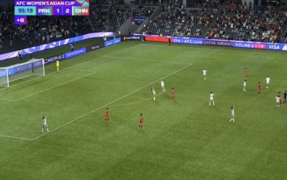 而在上半场的补时第4分钟,中国队发出战术定位球,张程雪接球后再传中,王霜包抄破门。边裁一开始举旗,示意中国队越位,进球无效。不过,经过VAR检查,主裁判示意进球有效。中国队2-1领先。