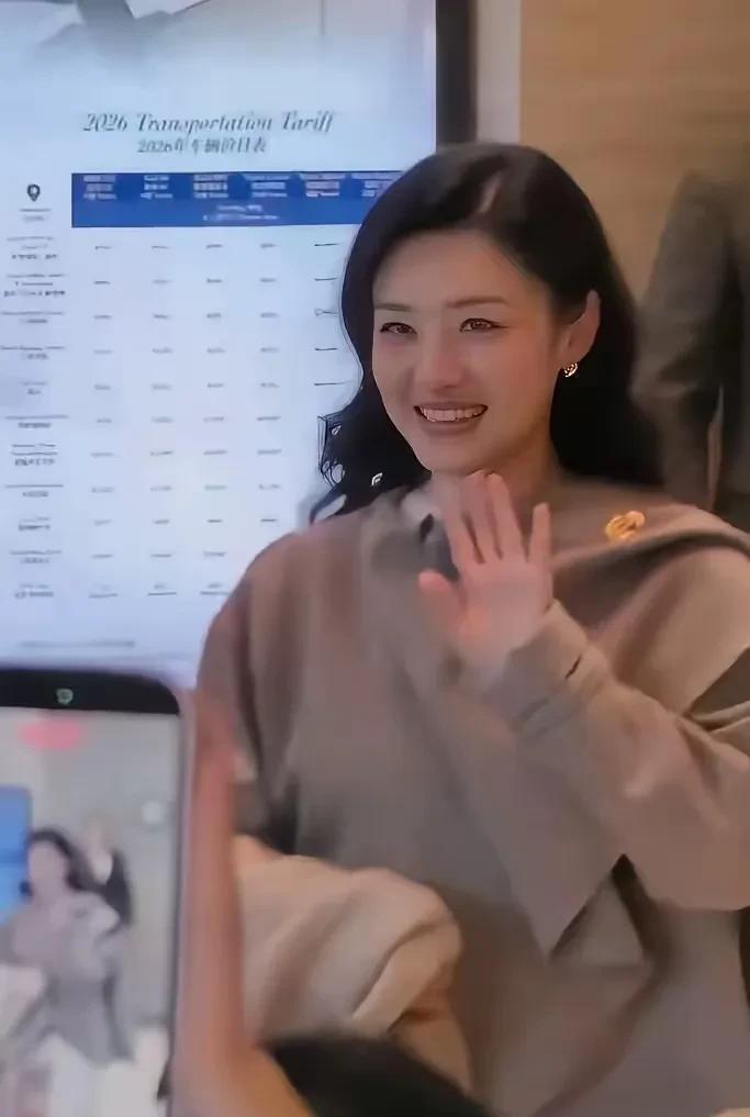 路透里几个细节特别有意思。 她一边跟00后的时代少年团成员贺峻霖自然聊天,一边又能在人群里保持那种独特的、不慌不忙的气场。 有网友拍到她在冷风里缩着脖子贴暖宝宝,下一秒对着镜头又能立刻切换成标志性的微笑。