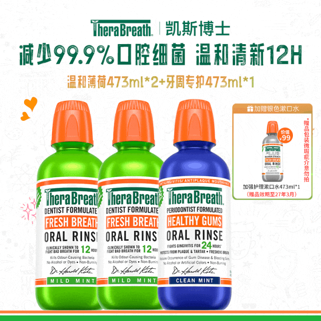 三瓶装209~219元,额外享加强护理漱口水473ml